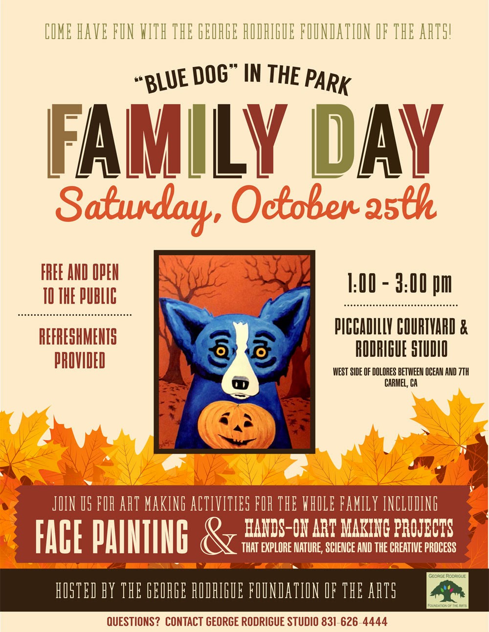 to welcoming you to “Blue Dog” in the Park on Saturday, October 25th,